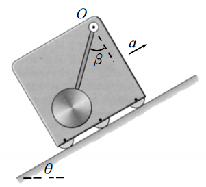 【已刪除】二、如圖所示,一擺(pendulum)可旋轉的支撐於一平板之 O 點上,而可自由於該平板 上擺動,該平板沿著斜坡向上以加速度 a 移動,斜坡的傾斜角度為θ。假設忽略該 擺之細長支撐桿質量,試求該擺在穩定不擺動時,其角度β為何?(25 分)