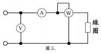 【已刪除】三、如圖三所示,電壓表讀數 50V,電流表讀數 1A,瓦特計讀數 30W,電源電壓頻率 為 50Hz,求線圈之電阻 R 與電感 L。(15 分)