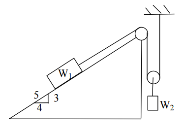 物體與斜面間摩擦係數 µ = 0.2 ,試求 W