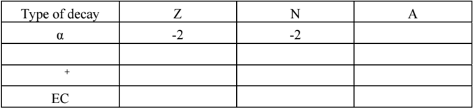 及電子捕獲(EC)衰變後原子序數(Z),中子數(N) 及質量數(A)之變化。(10 分)