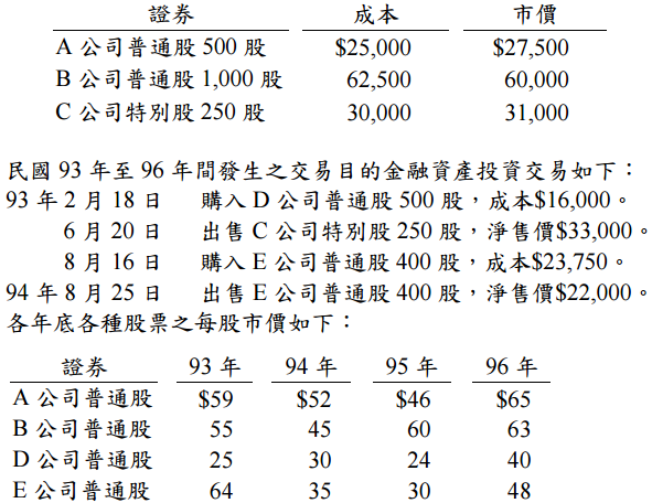 試作各年度有關交易目的金融資產投資交易及各年底評價之分錄。(30 分)
