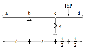 【已刪除】四、如下圖所示梁結構,撓曲剛度值為 EI,承受 16P 的垂直集中載重,軸向彈簧的勁度 為