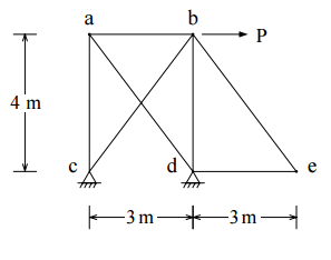 【已刪除】一、如下圖所示桁架,承受水平集中載重 P=90 kN,各桿件斷面積 A=20 cm