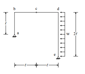 【已刪除】二、如下圖所示剛架,承受一水平均佈載重 w,各桿件撓曲剛度值為 EI。繪圖示剛架的 彎矩圖,並求 c 點的垂直位移及 d 點的轉角。(25 分)