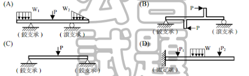 35. 各種梁的荷重如下列各圖所示,其中 P、P