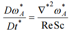 來無因次化上式,推導出下列 無因次式子: