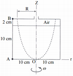 【已刪除】二、有一圓筒以其中心旋轉,如圖所示。試問旋轉速度ω為何值時,水面將剛好接觸原 點 O(虛線之情形)?此時 A 點及 B 點之壓力為何?(15 分)