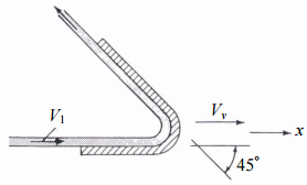 為水流在管徑為 20 cm 之管中的平均流速,若 p1 = 70kPa,試 問將管路固定於原處所須施加之水平力量為何?(15 分)