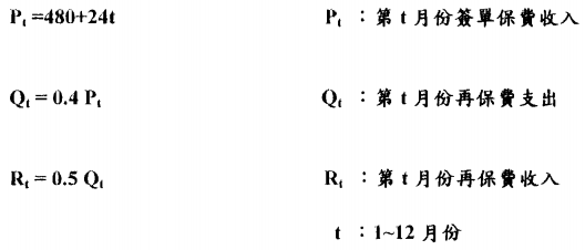 四、假殺A產險公句年度各月份汽車保險之相關保费資料如下列方程式所示,蜻 依二十四分法估算當年度未滿期保費準備金?(20分)