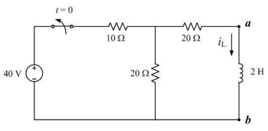 4.如下圖所示電路之開關在閉合很久以後(假設已達穩態),於時間 t = 0 時啟斷,求啟斷 瞬間電感器電流 IL(t)之值為