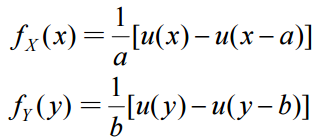其中 0<a<b,而 u(•)代表單位步階函數(unit-step function)。求算隨機變數 Z 的機率密度函數 f