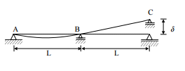 【已刪除】四、如圖所示之梁,C 點支承有δ之施工誤差。假設梁的抗彎剛度 EI 為常數。試求此梁 之最大彎矩。(20 分)
