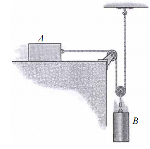 =0.3。若無 摩擦之滑輪及繩子重量忽略不計,試求當物體 A 向右運動 5 m 時,物體 A 的速度、加 速度及繩子的張力。(25 分)