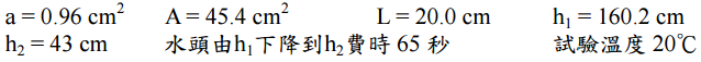【已刪除】⑵利用下列數據求出土壤之滲透係數(cm/sec)。 (25 分)