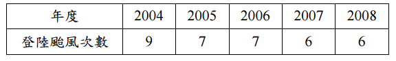 【已刪除】二、如表所示為台灣過去 5 年登陸的颱風次數,假設每年颱風登陸次數服從 Poisson 分 配,請估計今年登陸的颱風次數超過 3 次的機率為何?(10 分)
