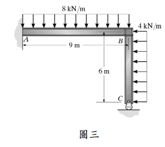 【已刪除】五、試繪製圖三所示剛構架之剪力、彎矩圖,假定 A 為固定支承,C 為滑動支承。(20 分)