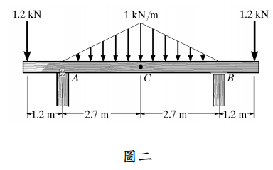【已刪除】四、試繪製圖二所示簡支梁之剪力、彎矩圖。(10 分)