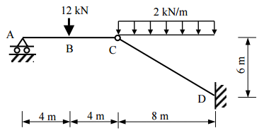 【已刪除】一、試計算圖示結構之反力,並繪剪力圖與彎矩圖。圖中 A 點為滾支承(roller),C 點 為內鉸接,D 點為固接(fixed)。(25 分)