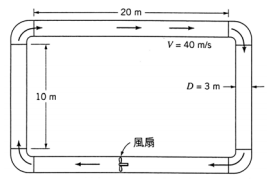 【已刪除】三、利用風扇產生 40 m/s的固定空氣速度流經如圖的風管迴路,假設空氣為不可壓縮且 空氣密度為 1.23 kg/m