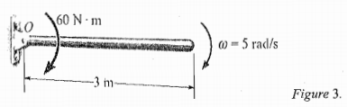 【已刪除】3. The 20-% slender rod shown in Figure 3 is rotating in the vertical plane, and at the instant shown it has an angular velocity of r7) = 5 rad/s, Determine the rod's angular acceleration and the horizontal and vertical components of reaction at the pin at this instant. (35%)