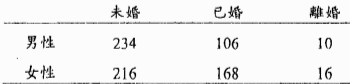 【已刪除】4. _在一項美國全國性的調査中,詢問20至29歲的男性和女性其婚姻狀態,其調查結果於下: