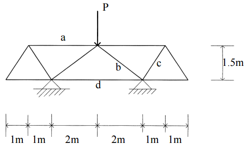【已刪除】二、如圖所示之桁架,兩支撐均為鉸接,試求桿件 a、b、c、d 之內力。(25 分)