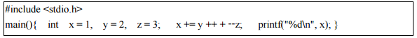 (A)5 (B)6 (C)7 (D)本程式編譯時,編譯器(Compiler)發出錯誤訊息,不能執行而無輸出結果產生