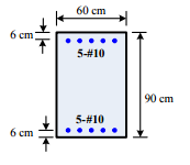 【已刪除】四、某一普通具有橫箍筋之矩形鋼筋混凝土柱斷面如下圖所示,上下各配有 5-#10 鋼筋 (一根#10 鋼筋之斷面積為 8.143 cm
