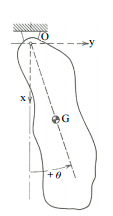 【已刪除】五、如圖所示之一任意外形的剛體,質量為 m,重力加速度以 g 表示,其質心(Mass center)G 與懸吊點 O 之距離為 r,若量測其在 x-y 鉛垂平面小角度擺動所得之自然 頻率為 f,試求其對通過質心 G 之軸(垂直於紙面)的質量慣性矩(Mass moment of inertia)。(20 分)