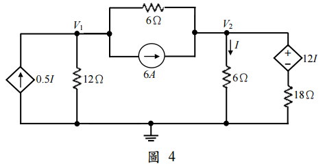 【已刪除】五、請詳列過程推求圖 4 電路圖中電流 I 之安培數值。(20 分)
