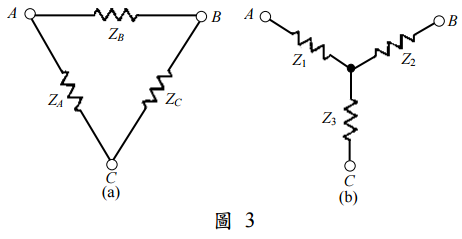 【已刪除】四、已知圖 3 中(a)、(b)兩電路圖之 A、B、C 三個端點的電器特性完全等效(Electrically Equivalent),請詳列過程推導證明