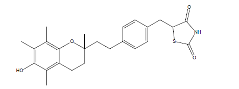 Troglitazone可藉CytP450代謝,產生含quinone, hydroxymethyl等代謝物,並可分離出穀胱甘肽共軛(glutathione conjugates)。已知CytP450會氧化troglitazone之雜環及phenol,試寫出troglitazone之代謝途徑,並指出那些中間產物可能引起肝毒性。(10分)