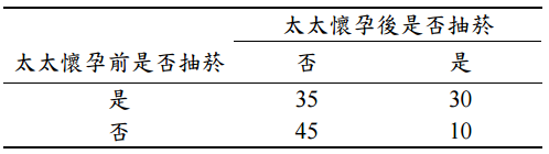 【已刪除】三、某婦產科醫師針對 120 位準爸爸進行抽菸行為之調查,結果如下。試問,太太懷孕 對於先生之抽菸行為是否有影響?(15 分)