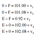 ,i 1,2,...,5為殘差(剩餘誤差)項。經 由最小二乘法平差,求得 E、F 的估值分別為 102.02m 及 101.06m。如果以 AX=L+V 矩陣形式表示該方程式,試列出 A、X、L 等矩陣的內容;並依該方程式 計算法方程式 N、殘差項( v