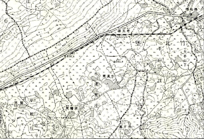 圖中太平山下、老瓦磘、水流東等自然村一 帶,廣植水稻的地區,是屬於何種地形景觀? (A)地壘 (B)通谷 (C)漥盆 (D)沖積扇
