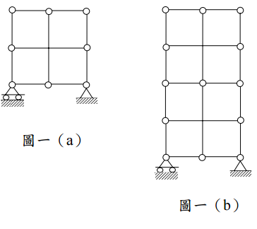 【已刪除】一、請判別圖一(a)及圖一(b)中之結構。有小圈圈處代表鉸接點,否則為剛接。它 們是穩定結構嗎?請說明你的判斷邏輯,否則不予計分;如果是穩定結構,它的 超靜定次數(static indeterminacy)為若干?請說明你的判斷邏輯,否則不予計分。 (20 分)