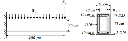 【已刪除】四、有一空心斷面懸臂梁,斷面如圖所示,寬度 50 cm,深度 75 cm。假設此梁除了自重 外,另承受均佈靜載重W