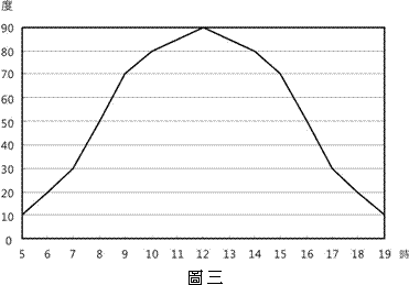 52. 圖三是某地在冬至當天太陽光入射角的逐時變化。