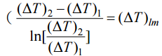 分別為熱交換器入口與出口處溫差, U 為整體熱傳係數,A 為熱傳面積)