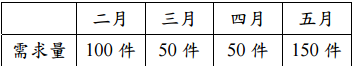 【已刪除】五、以下是某工廠四個月的訂單需求: