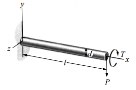 【已刪除】四、一圓形旋臂桿,如下圖所示,在自由端承受 T 的扭矩(torque)與 M(M=P•l)的 彎矩(bending moment),圓桿材料的降伏應力(yield strength)為 Sy,安全係 數為 F,當軸承受靜負荷、橫向剪應力可忽略的狀況下,請依照畸變能量理論 (distortion energy theory),推導決定軸直徑 d 的公式。(20 分)