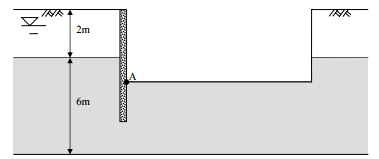 ,請計算位於開挖擋土壁內側A點所受之滲流力; 並檢核此時開挖底面是否有管湧問題?(25 分)