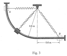 【已刪除】3. The spring has an unstretched length of 0.4 m and a stiffness of 200 N/m. The 3-kg slider and attached spring are released from rest at A and move in the vertical plane. Calculate the velocity v of the slider as it reaches B in the absence of friction. (25%)