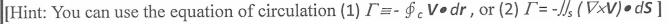 【已刪除】4. (20%) Calculate the circulation about the square enclosed by x = ±1 and y = ±1 in the xy-plane for the 2-D flow of V- u / + v j, where u = 3x