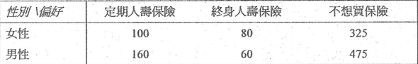 試在α = 0.05的顯著水準下,檢定大學生對人壽保險商品的偏好,是否存在性別差異? (11%)