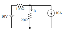 四、如下圖,利用重疊定律,求流經 20Ω電阻器的電流I1,再利用迴路電流法證明結果 相同。(20 分)