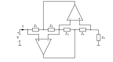 二、試證下圖運算放大器的電路可以實現一個電感器(注意:被動元件只可以使用電容 器及電阻器)。(16 分)
