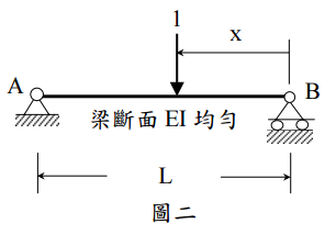 【已刪除】二、設有如圖二所示斷面均勻之梁AB,單位向下載重在AB間移動。試求A點轉角θA之 影響線。(20 分)