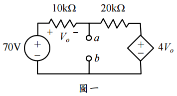 【已刪除】一、求圖一中 a 與 b 兩端之戴維寧(Thevenin)等效電路。(20 分)