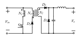 【已刪除】五、如 圖 所 示 的 順 向 式 轉 換 器 ( Forward Converter ) , 其 規 格 包 含 : 輸 入 電 壓 為 48 V ± 10% 、輸出電壓為 12 V、開關切換頻率為 100 kHz、連續導通模式及控制電 路的最大責任週期為 0.48,試求 N